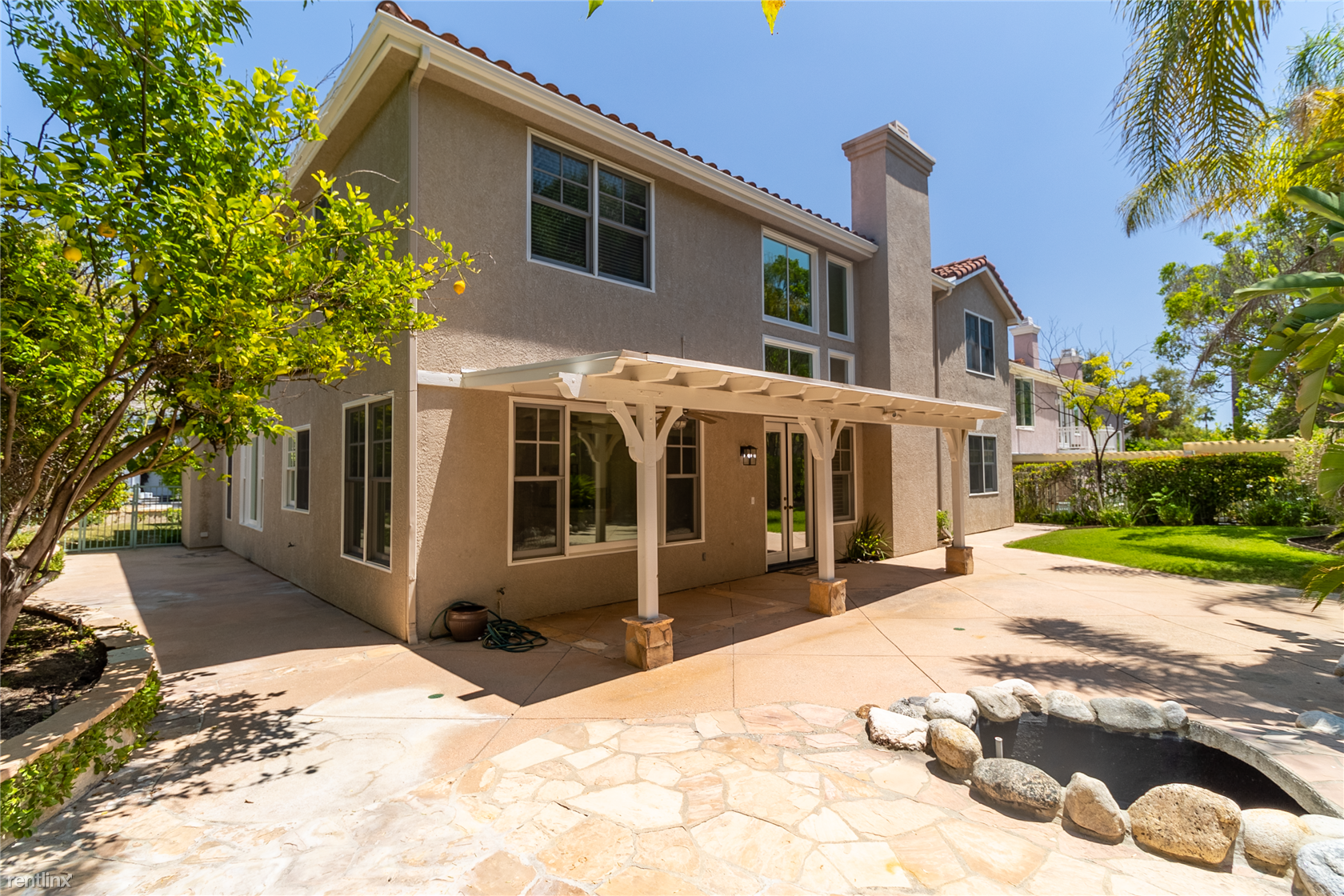 Welcome to this newly updated, 5 bed/5 bath home in West Hills, nestled in a fantastic, quiet neighborhood. With its open layout and high ceilings, this residence offers a perfect blend of comfort and elegance. Inside, you'll be greeted by tile flooring and bright windows, creating a welcoming entryway, adjacent to the oversized living room. The family room boasts a wet bar, providing a great space for entertaining. Three fireplaces throughout the home add warmth and coziness on chilly nights. The open-plan, chef's kitchen is well-equipped with a range, microwave, dishwasher, oven, and space for dining. Upstairs, the expansive primary bedroom offers a walk-in closet, and ensuite bathroom that includes a jacuzzi tub and glass shower enclosure. The remaining bedrooms are spacious and versatile. The private backyard offers a water feature that adds a tranquil ambiance to the outdoor space. With its covered awning, the yard is an ideal spot for grilling and outdoor dining. Additional conveniences include; 3-car garage, central air/heat, washer/dryer hook-ups, security system, and more. Don't miss the opportunity to experience this West Hills home; close to restaurants, local parks, and in a lovely residential neighborhood. Schedule a showing today! Application: https://www.hemlane.com/listings/7635-graystone-drive-los-angeles-ca-91304/214765d0-ed7c-40e2-aba4-29aaac8e203a (RLNE8147395)
